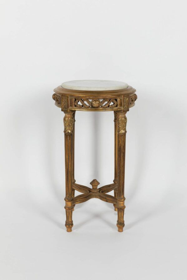 Table doré et marbre blanc 40 x 40 x 71cm